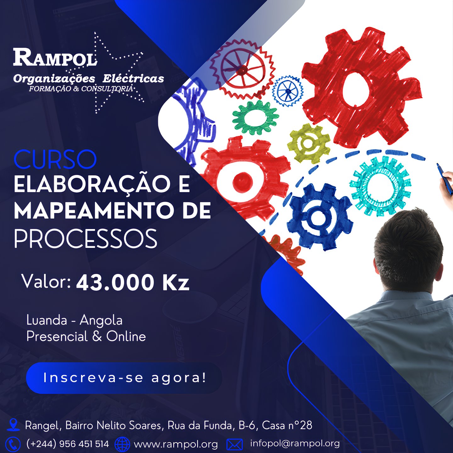 A Formação em Elaboração e Mapeamento de Processos tem como objectivo geral capacitar os participantes para compreender, desenhar e optimizar processos organizacionais, promovendo maior eficiência, controlo e padronização das actividades.